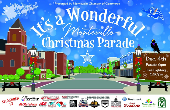 Montevallo Christmas Parade & Tree Lighting Thursday, 12/4/25 begins at 5:30 PM.